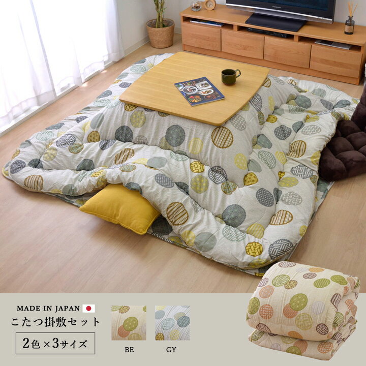 gy(グレー) こたつ布団 掛敷セット サイズ 掛け)約205×205cm敷き)約190×190cm 適応こたつ台サイズ 80〜90×80〜90cm のこたつ台対応 カラー ベージュ/グレー 組成 掛け)表地=ポリエステル 100%【ピーチスキン】 裏地=ポリエステル 100%【ピーチスキン】 中材=ポリエステル100% 2.2kg(東レ マッシュロンわた) 敷き)表地=ポリエステル 100% 【ピーチスキン】 裏地=ポリプロピレン 100%【不織布】 中材=ポリエステル100% 原産国 掛け)日本製(側=中国製 最終加工=日本)敷き)中国製 洗濯表示 掛け)40℃以下の水温で弱い手洗いで洗濯してください。