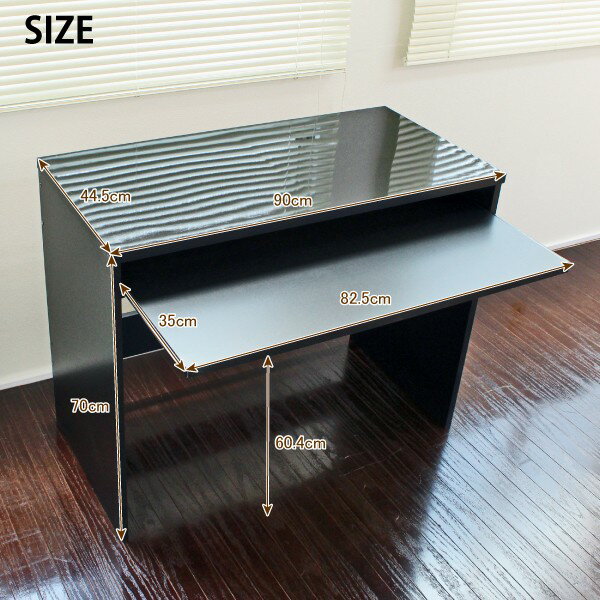 ■84×35cmの大型スライドテーブルが付いた90cm幅タイプデスク ■デスクの天板が鏡面仕上げになっているた め、光沢・ツヤがあり、きれいな仕上がりです。